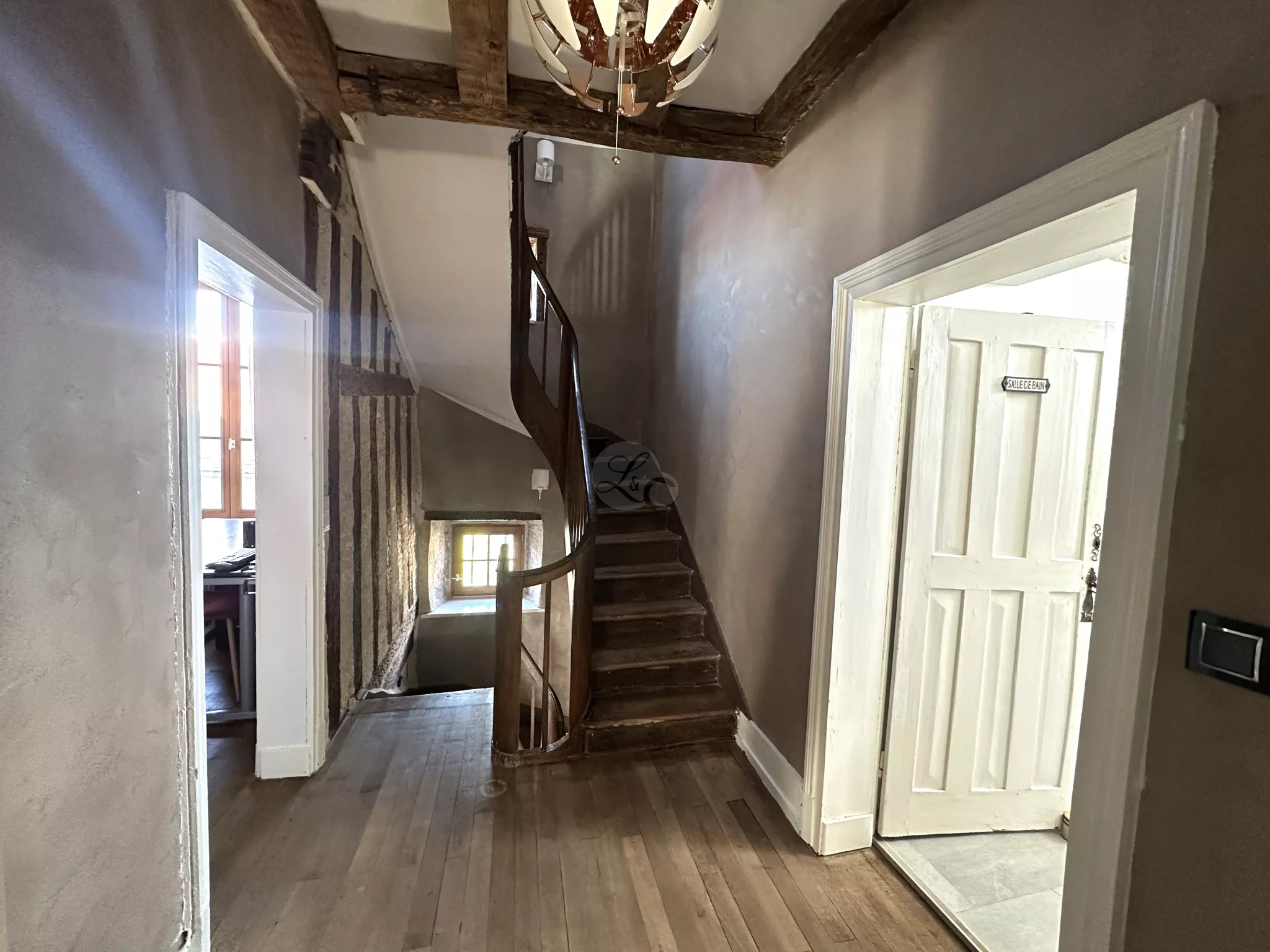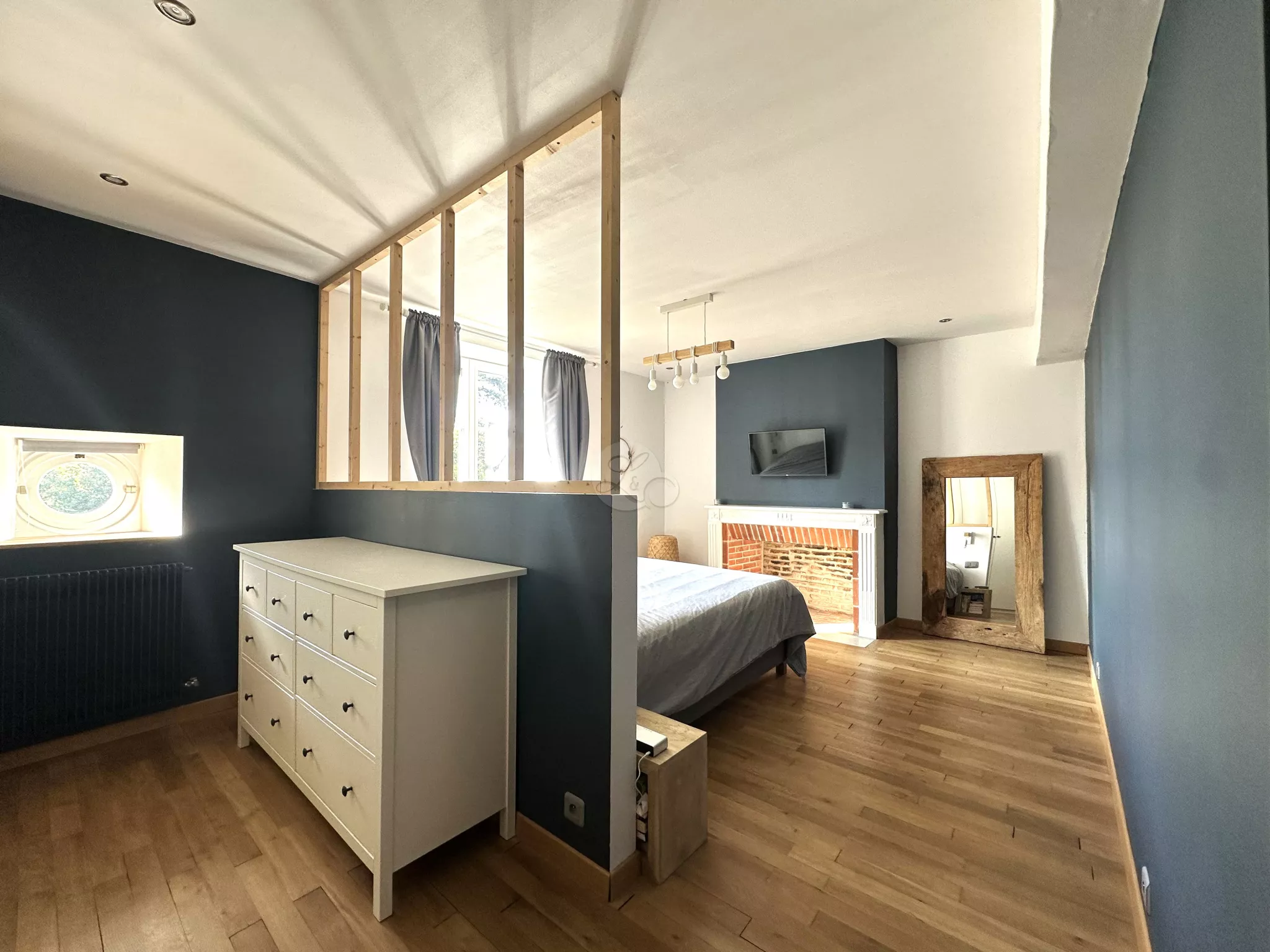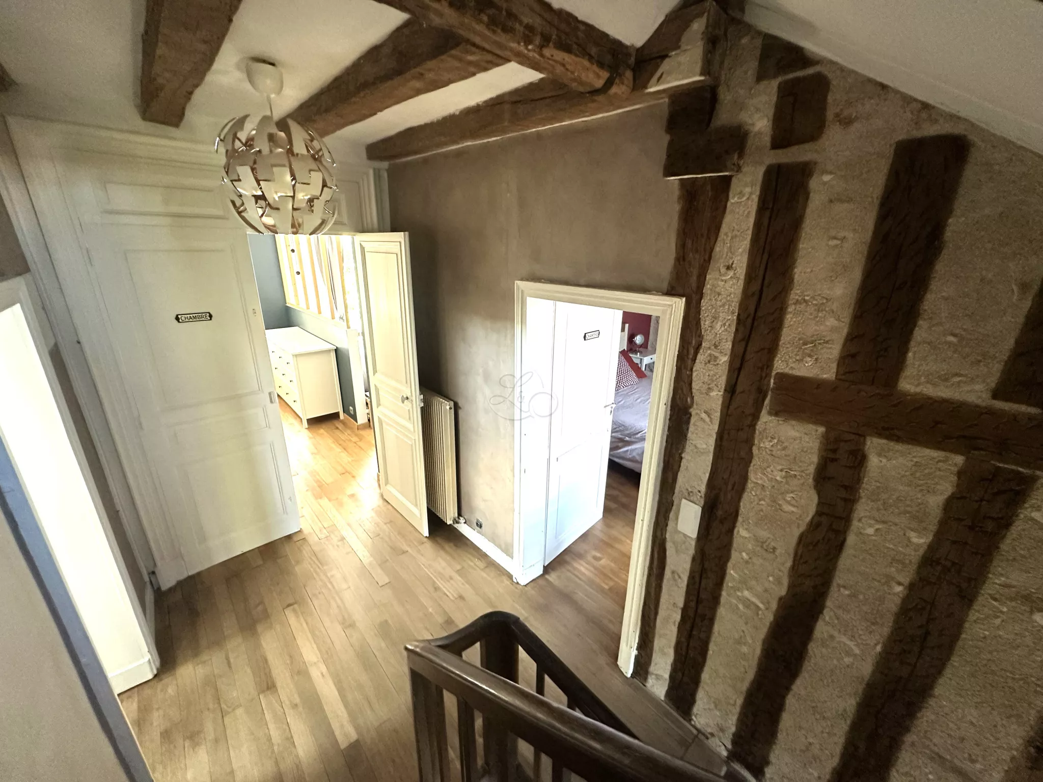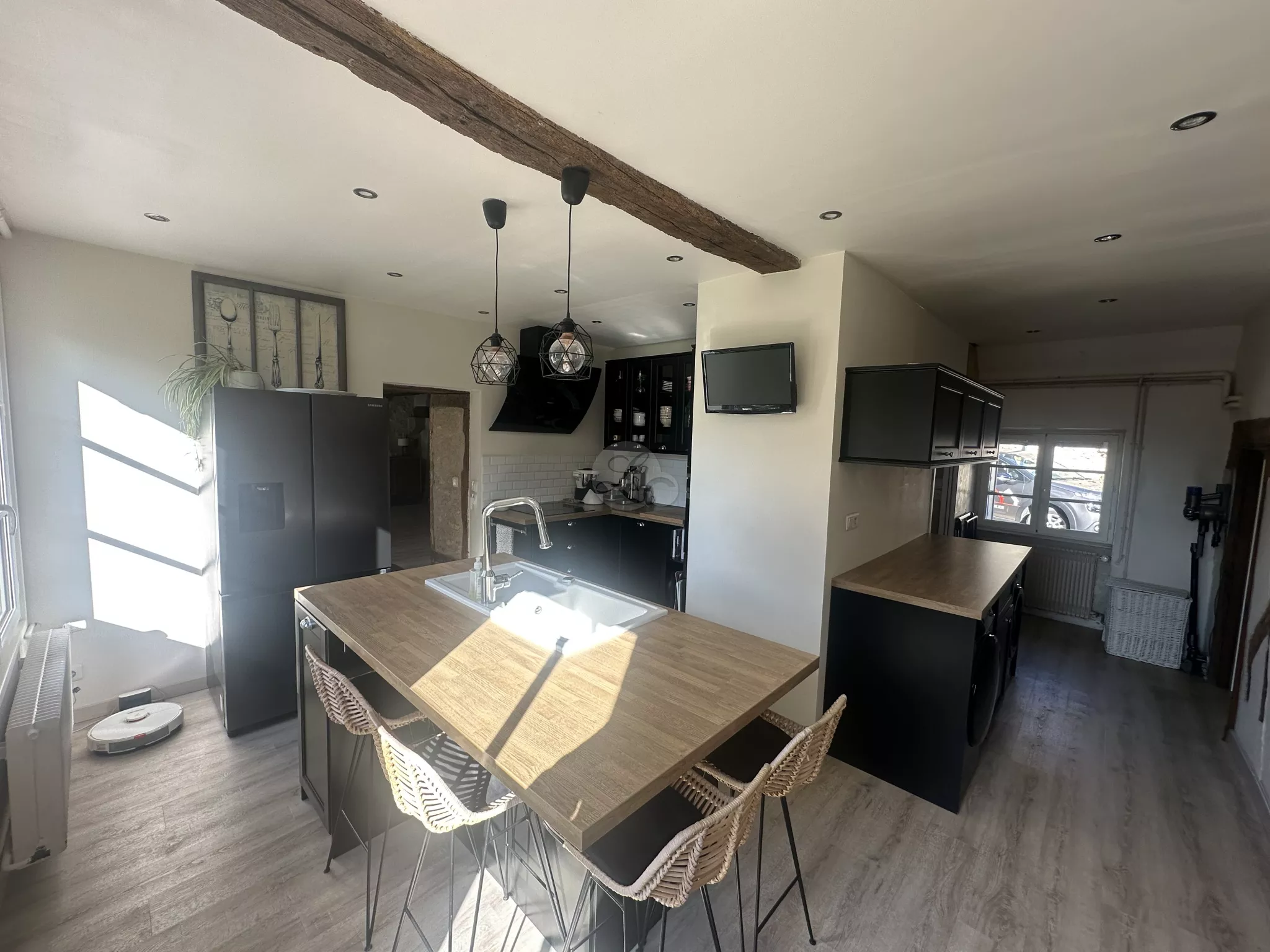 Dès l'entrée, vous serez accueilli par un vaste séjour lumineux sublimé par des colombages apparents, deux cheminées d'époque, et une atmosphère chaleureuse et élégante. La grande cuisine équipée avec son îlot central, résolument moderne, offre un espace convivial idéal pour recevoir.