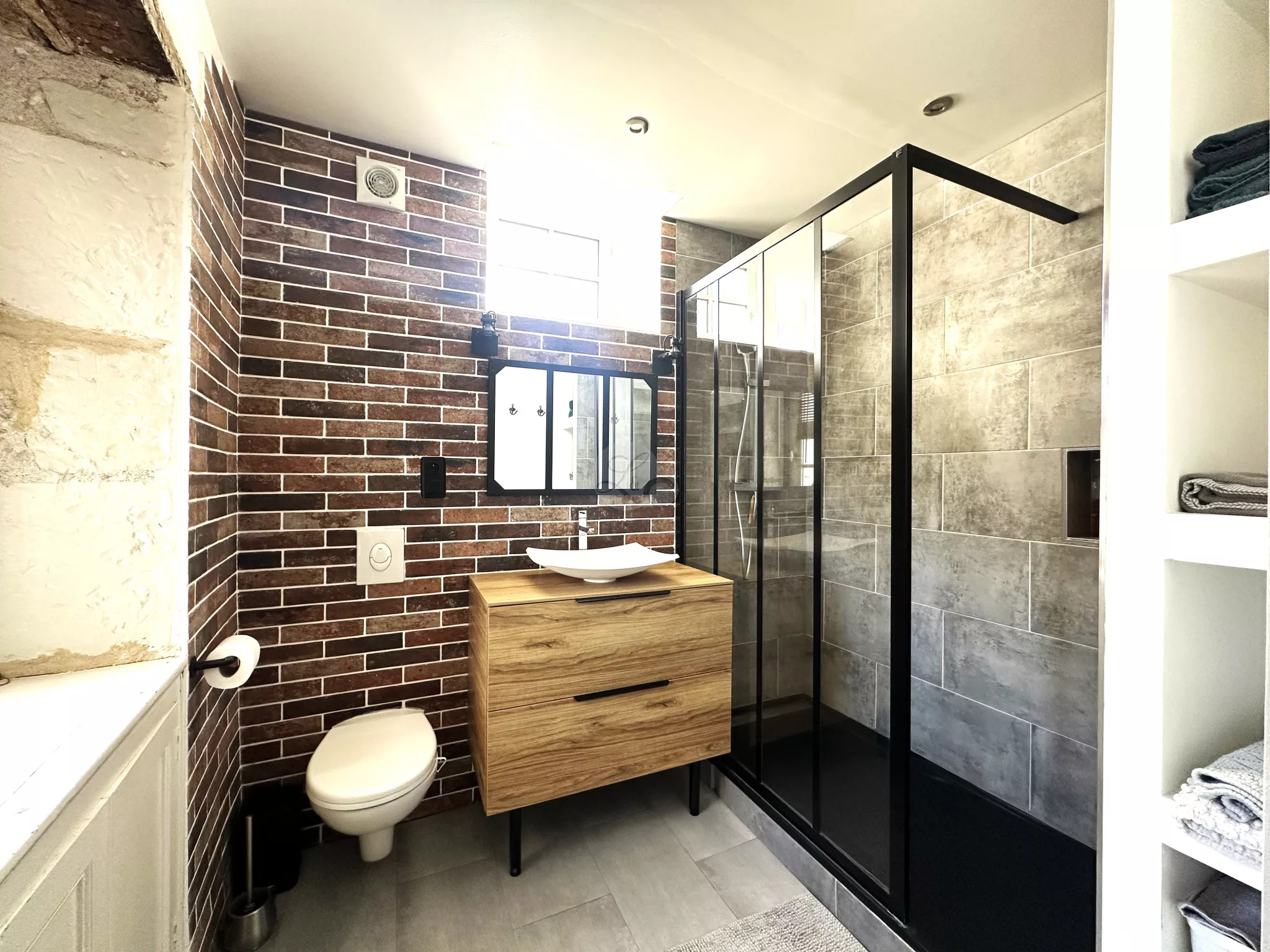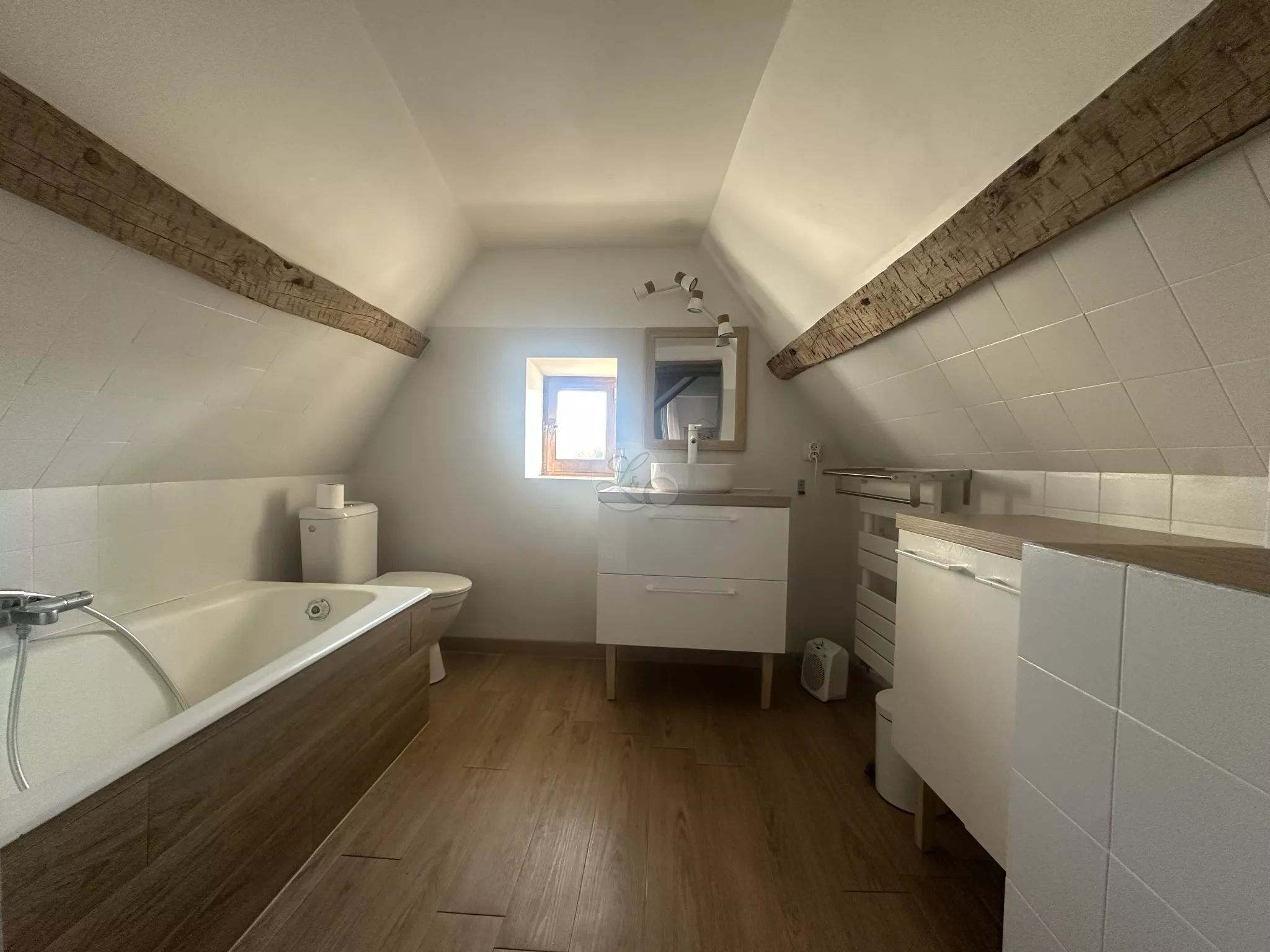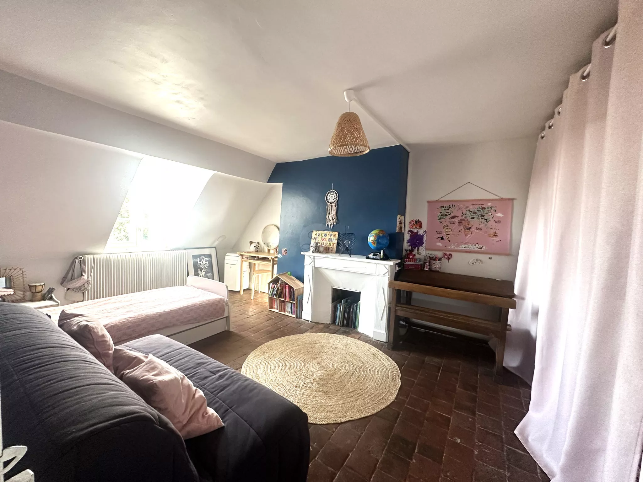 Le bien offre une belle capacité d'accueil avec quatre chambres spacieuses réparties sur deux niveaux, accompagnées d'un bureau lumineux, idéal pour le télétravail ou les loisirs. Côté confort, vous trouverez une salle d'eau avec WC au premier étage, ainsi qu'une salle de bains avec WC au second. Un WC indépendant est également présent au rez-de-chaussée. Enfin, un grenier aménageable offre la possibilité d'une cinquième chambre ou d'un espace détente selon vos envies.