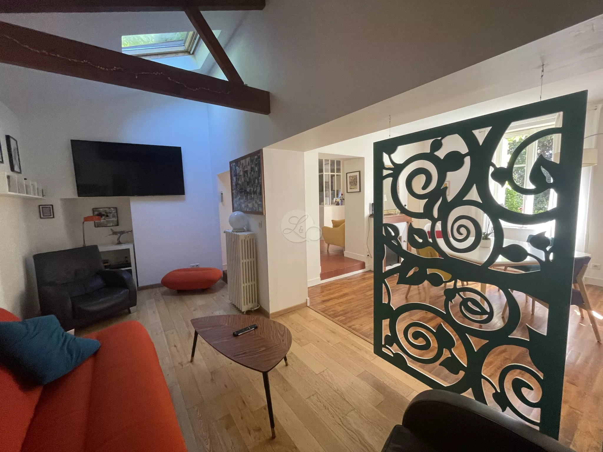 BLOIS. Elégante maison bourgeoise en parfait état édifiée dans un écrin de verdure à deux pas de toutes les commodités, des bords de Loire et du centre ville. D'une surface de l'ordre de 150 m2, cette agréable maison de ville, à la décoration raffinée, offre de belles pièces de vie lumineuses et 4 chambres dont 3 très spacieuses. Cette authentique demeure de charme et de caractère entièrement rénovée avec des matériaux de qualité est protégée des regards par un agréable terrain paysager d'environ 1200 m2 disposant d'une partie 'zen' et nature qui surplombe la bâtisse offrant une belle vue dégagée.