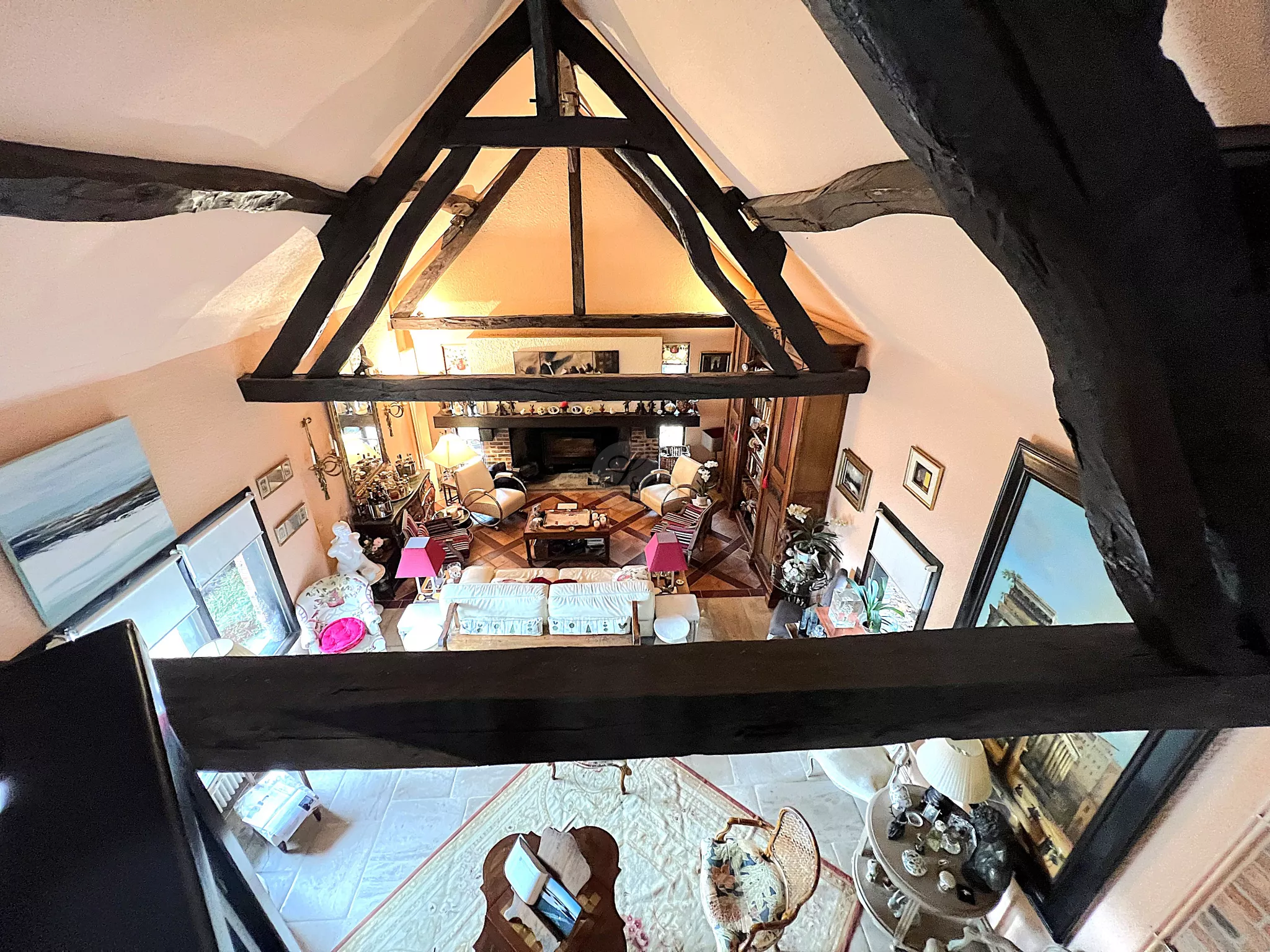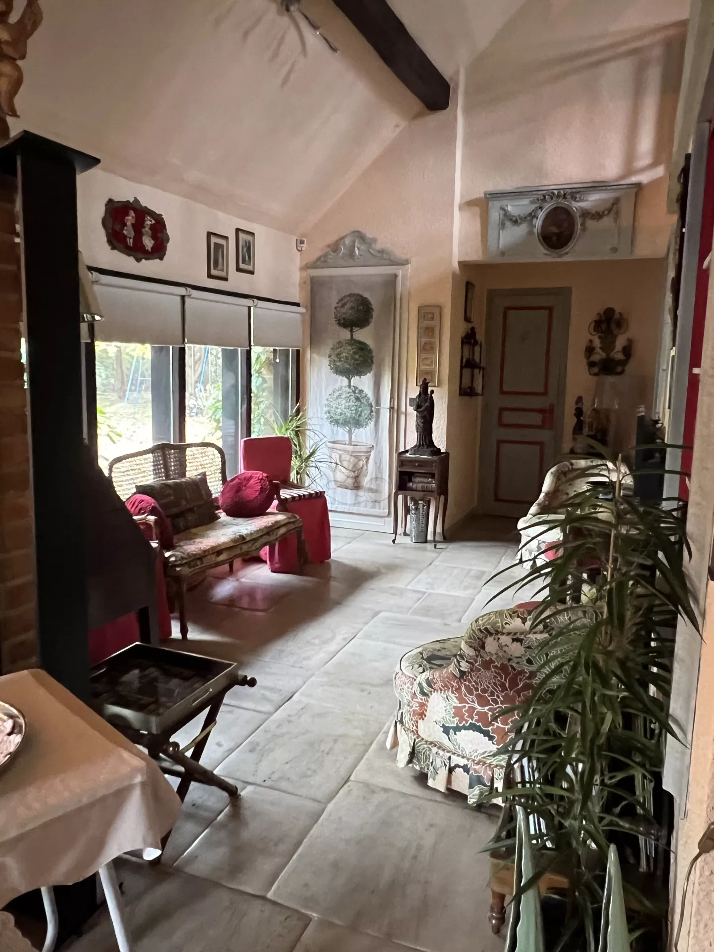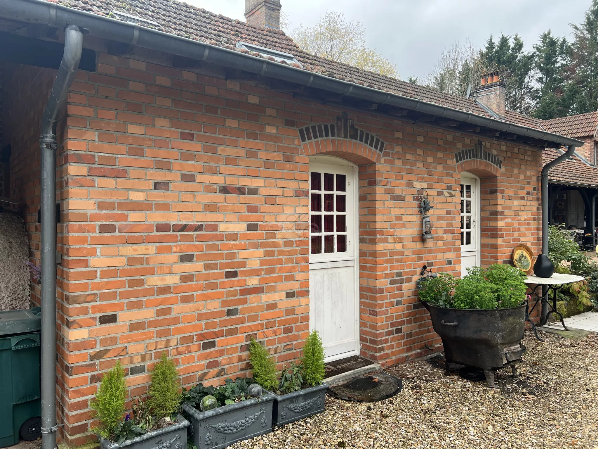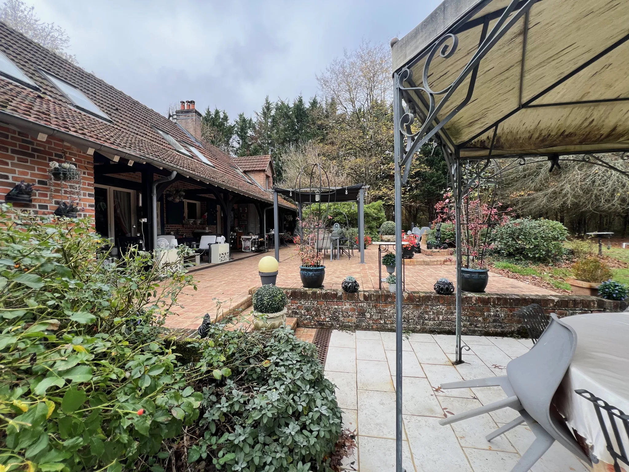cette grande longère ouvre sur le parc sur une vaste terrasse, en partie couverte par un auvent, invite à profiter pleinement de la vue sur le parc, véritable havre de tranquillité.