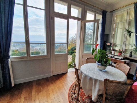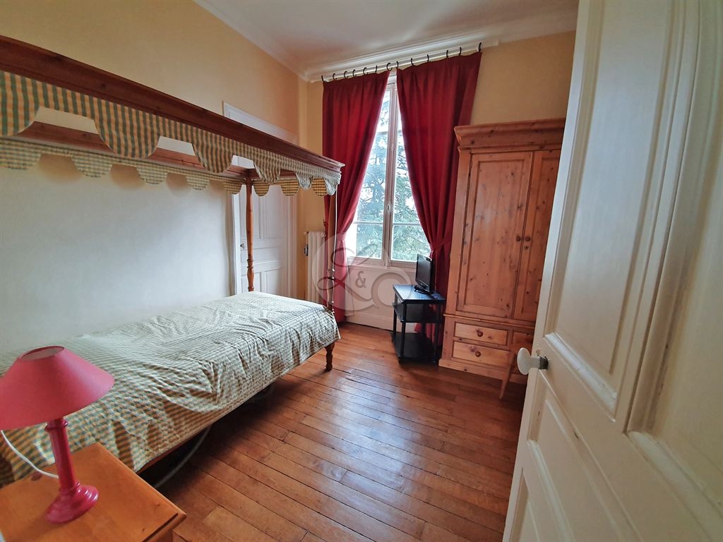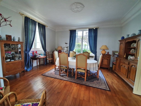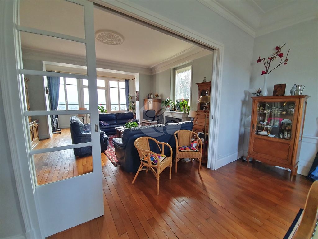 Située dans un quartier résidentiel offrant à la fois une proximité commerces et gare, élégante maison de maître d'environ 300m2 datée début XXème, implantée sur un terrain clos de 2880m2. Jouissant d'une vue sur la Loire depuis les pièces du rez-de-chaussée, cette demeure de caractère, aux proportions bien équilibrées, est constituée d'un vaste hall d'entrée distribuant les pièces de réception en enfilade, le bureau et la cuisine. Les 2 étages supérieurs accueillent les 7 chambres dont la plupart disposent de pièces d'eau attenantes, et offrent une vue directe sur le fleuve. Une dépendance abrite un logement indépendant actuellement loué d'environ 70m2, ainsi que 2 garages...
