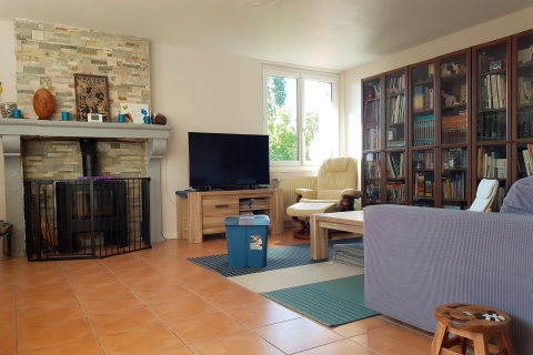 Entrée (env 15 m2), salon avec poêle à bois (env 21,70 m2), salle à manger (env 29,10 m2), cuisine aménagée et équipée (env 15,50 m2), arrière-cuisine / lingerie, dégagement, chambre (env 13,40 m2), salle d'eau avec WC.