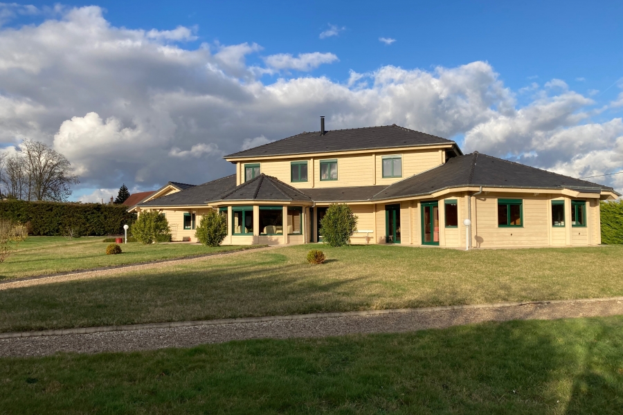 A proximité de CONTRES, cette charmante propriété en madrier massif, d'inspiration américaine, offre une surface habitable d'environ 300m2 répartie en de vastes pièces lumineuses profitant d'une vue directe sur le jardin et de 5 chambres dont 3 de plain pied.